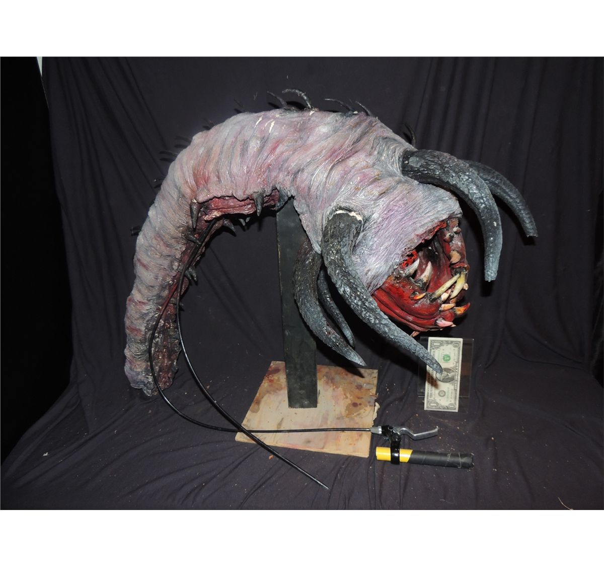 This is a complete Animatronic Alien carnivorous worm puppet. This thing is wicked in person! It is very well made of latex over foam over an armature. There are 2 cables. One works the jaw. I forgot to pull the other one. This makes a great display. I propped it up to get a better angle, but this looks best stretched out in person.