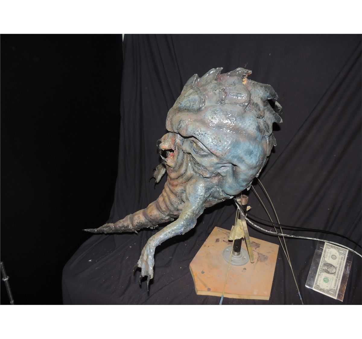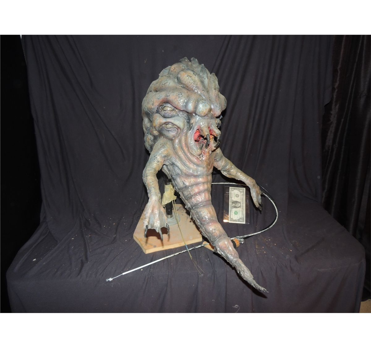 This comical conversation starter is a very cool Animatronic ALIEN Shrimp Creature Puppet! It is foam filled latex, but remains supple. The 2 cables move each of the arms.