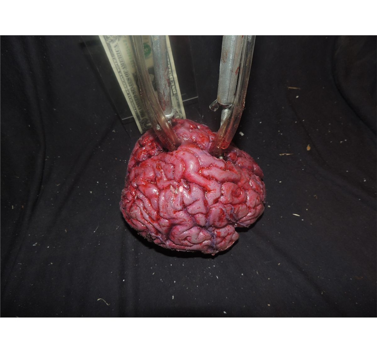 This is an animatronic Walking Brain puppet! LOL! Made of solid silicone with blood rigs, and 2 rods that inch it along like a slug. [These were CGI'd over in post].
