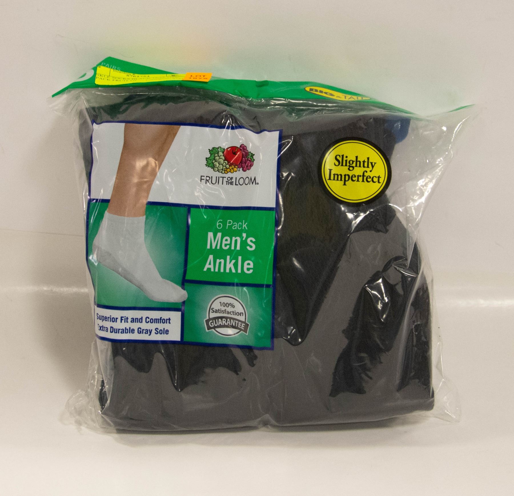 ANKLE SOCKS BLACK 12-16 SIZE 6-PACK FRUIT OF
