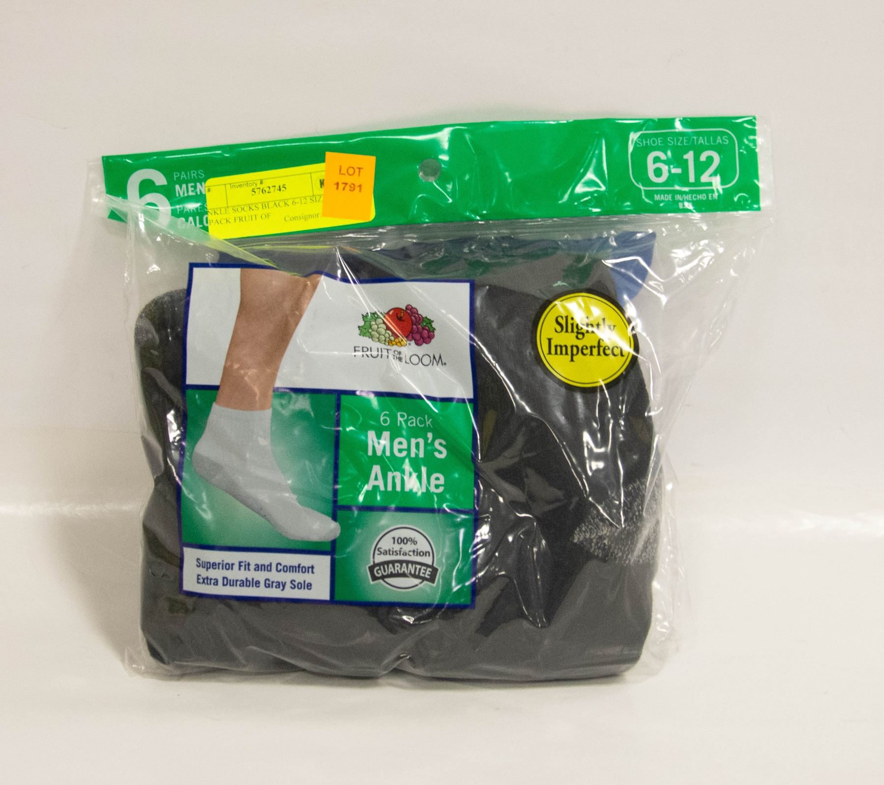 ANKLE SOCKS BLACK 6-12 SIZE 6-PACK FRUIT OF