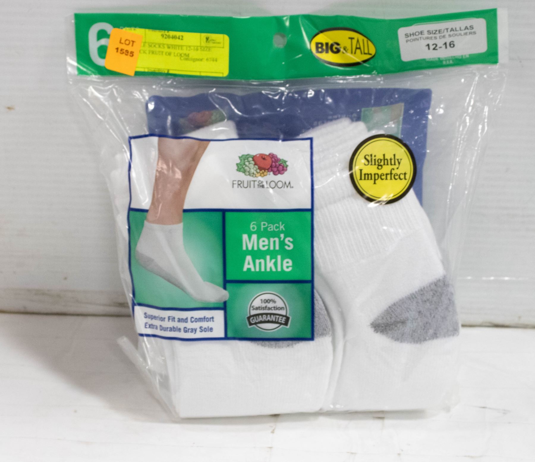 ANKLE SOCKS WHITE 12-16 SIZE 6-PACK FRUIT OF LOOM