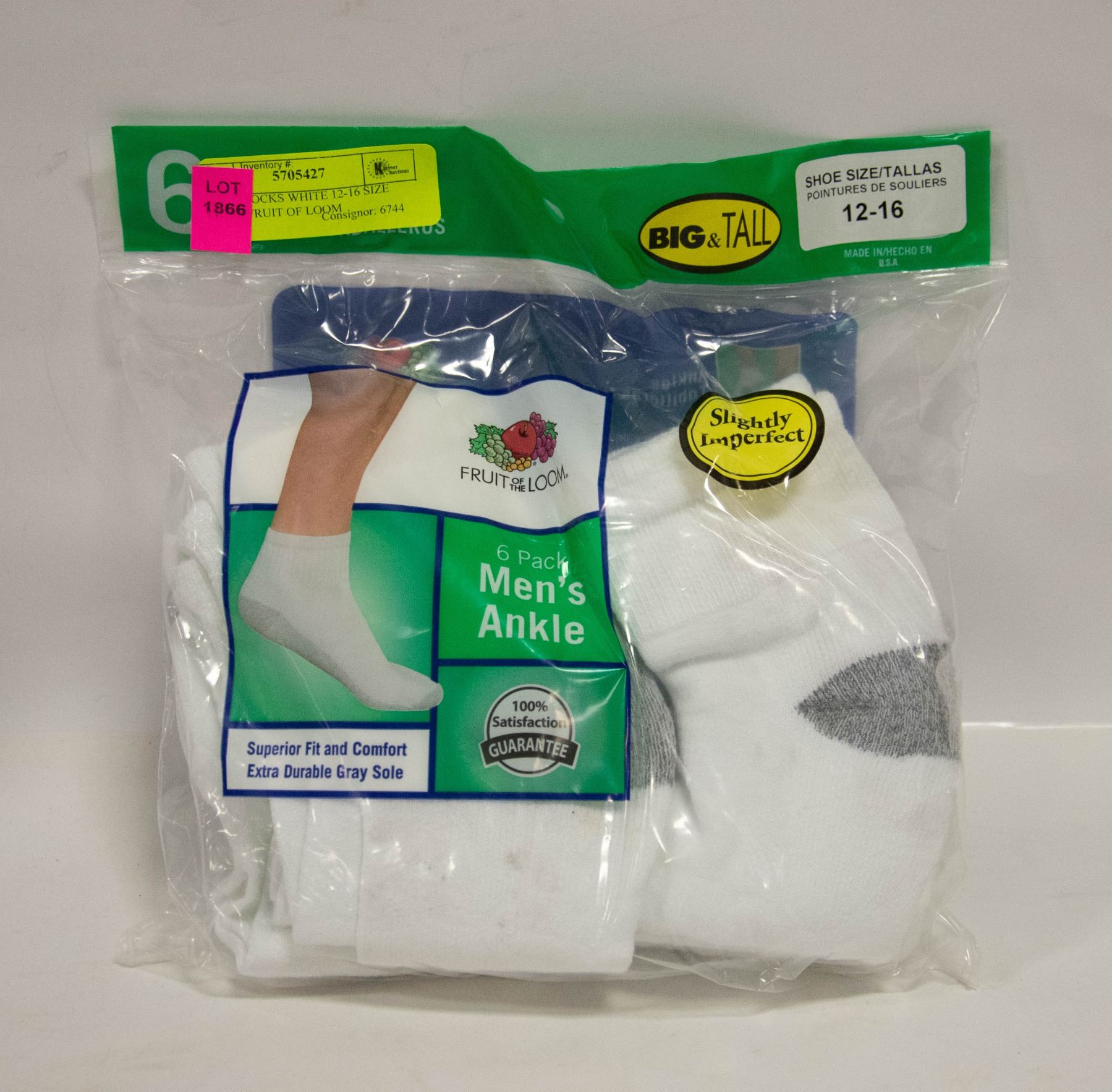 ANKLE SOCKS WHITE 12-16 SIZE 6-PACK FRUIT OF LOOM