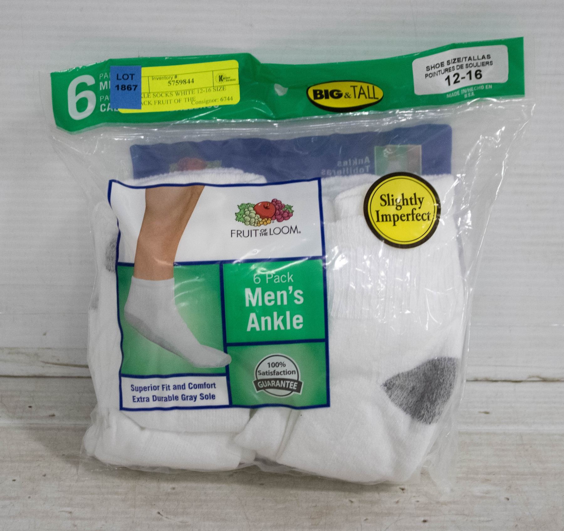 ANKLE SOCKS WHITE 12-16 SIZE 6-PACK FRUIT OF THE