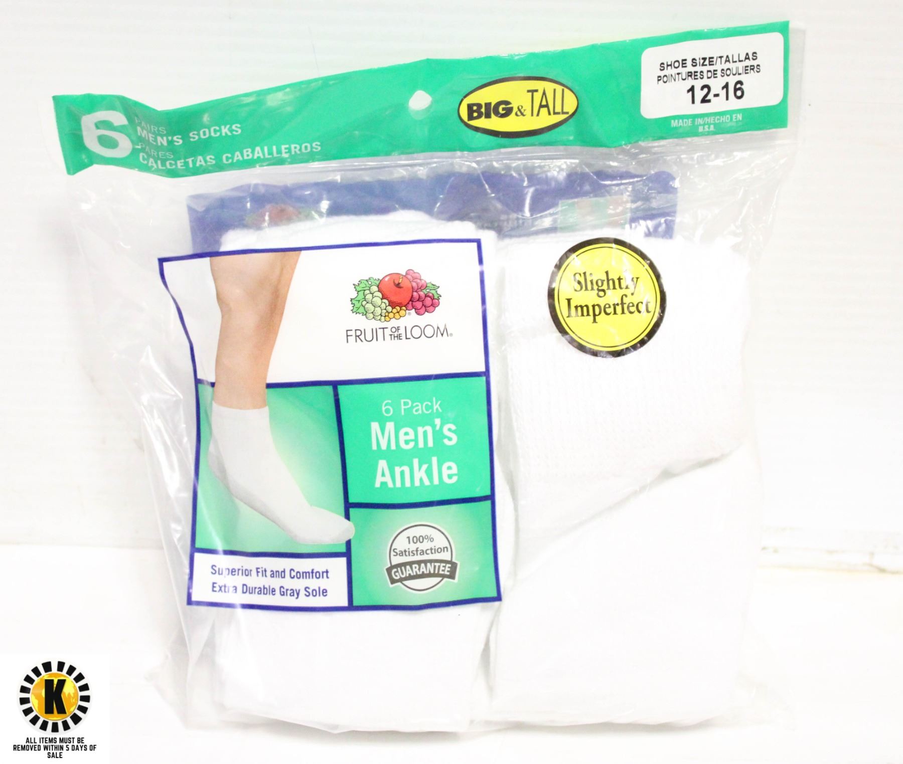 ANKLE SOCKS WHITE 12-16 SIZE 6-PACK