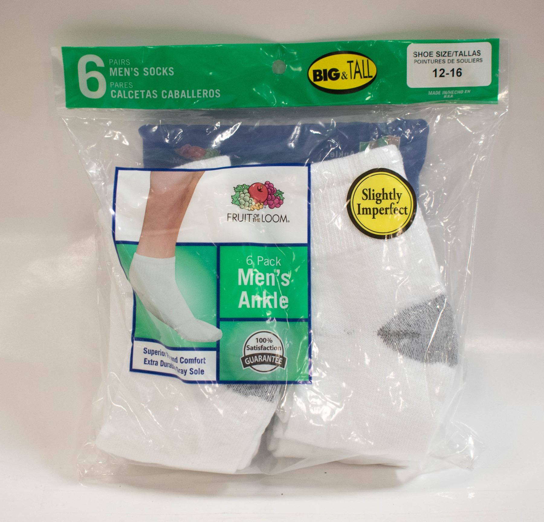 ANKLE SOCKS WHITE 12-16 SIZE 6-PACK