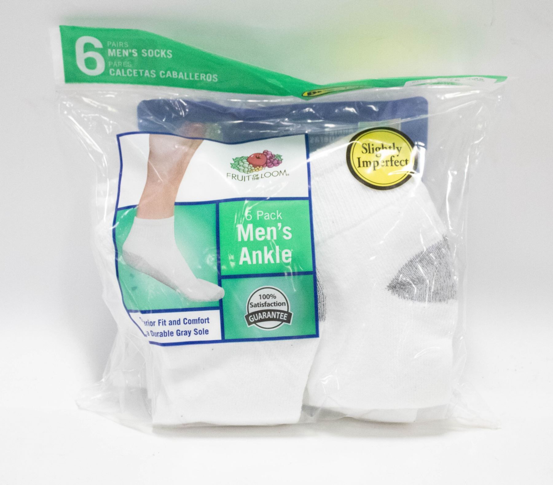 ANKLE SOCKS WHITE 12-16 SIZE 6-PACK