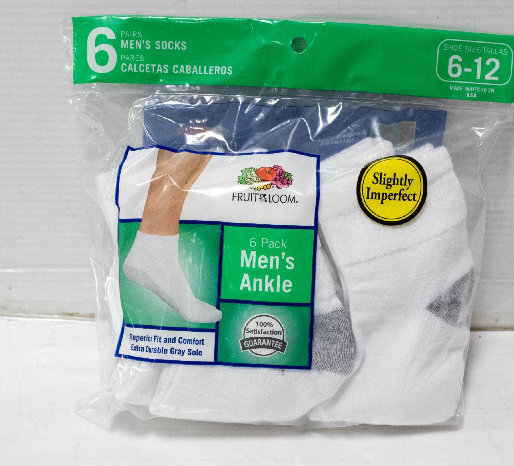 ANKLE SOCKS WHITE 6-12 SIZE 6-PACK FRUIT OF LOOM