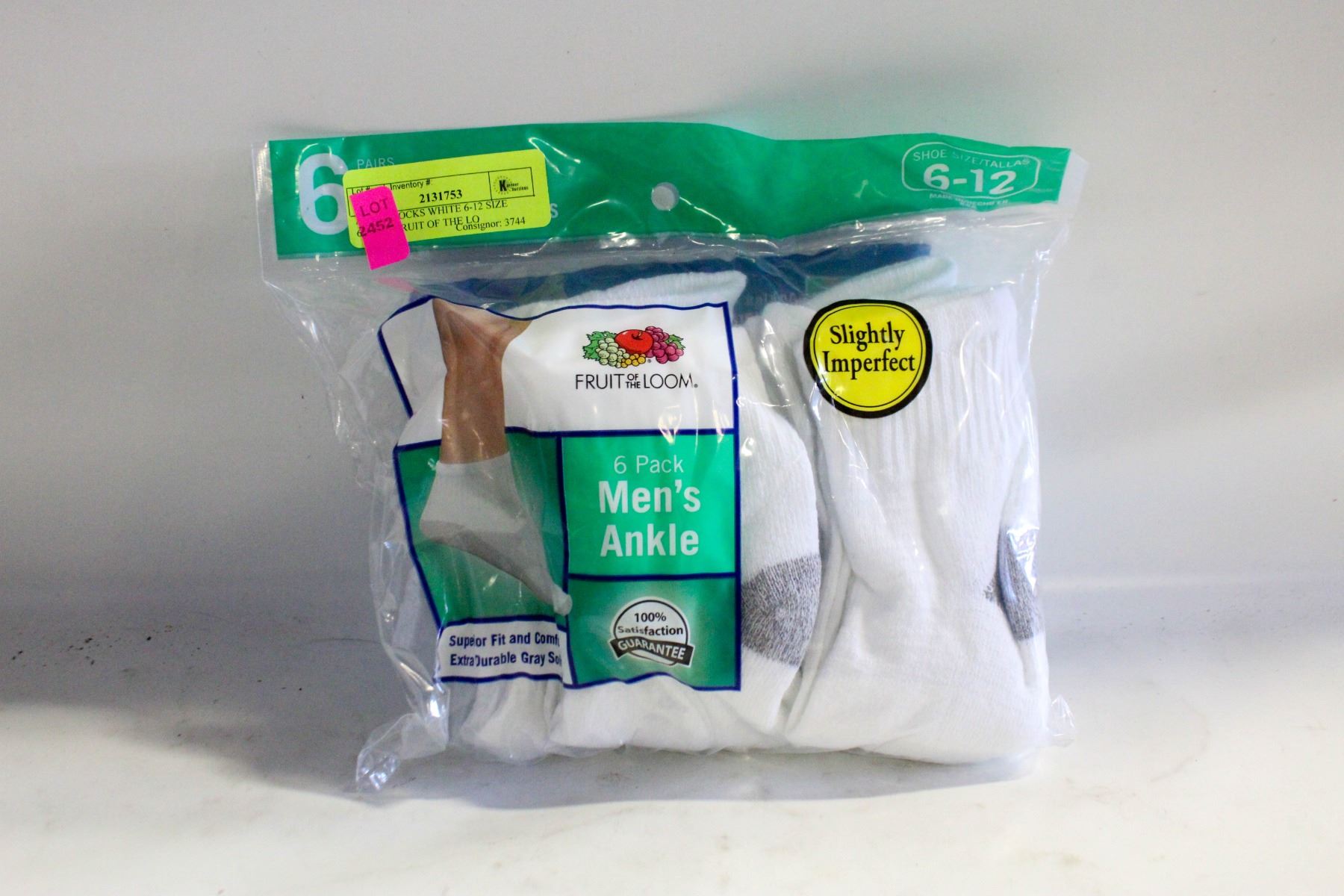ANKLE SOCKS WHITE 6-12 SIZE 6-PACK FRUIT OF THE LO