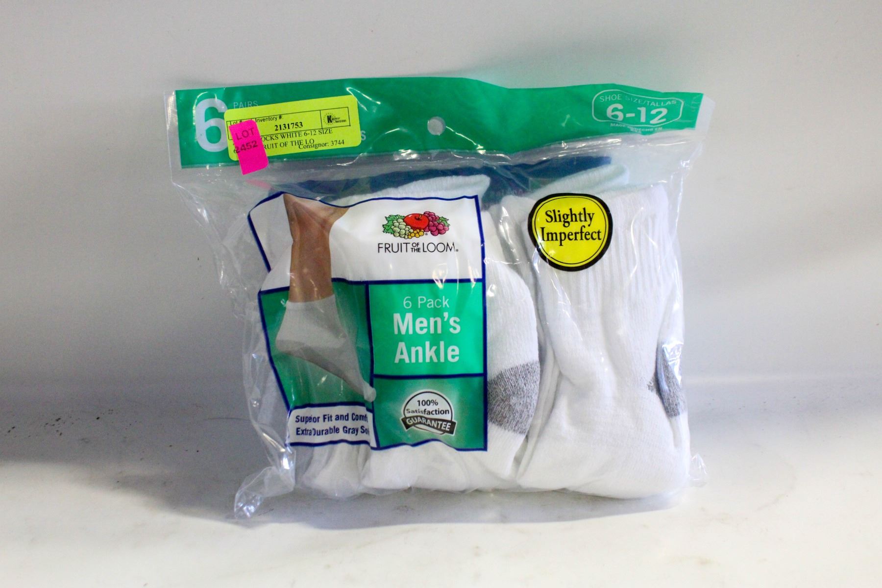 ANKLE SOCKS WHITE 6-12 SIZE 6-PACK FRUIT OF THE LO