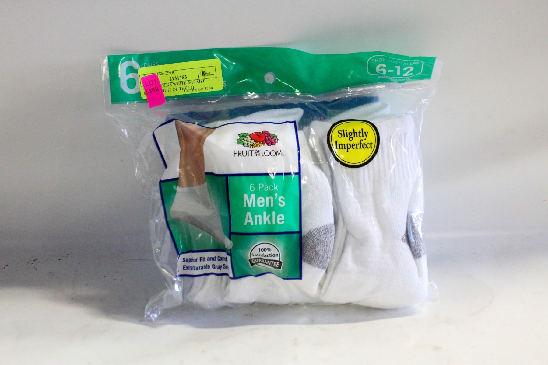 ANKLE SOCKS WHITE 6-12 SIZE 6-PACK FRUIT OF THE LO