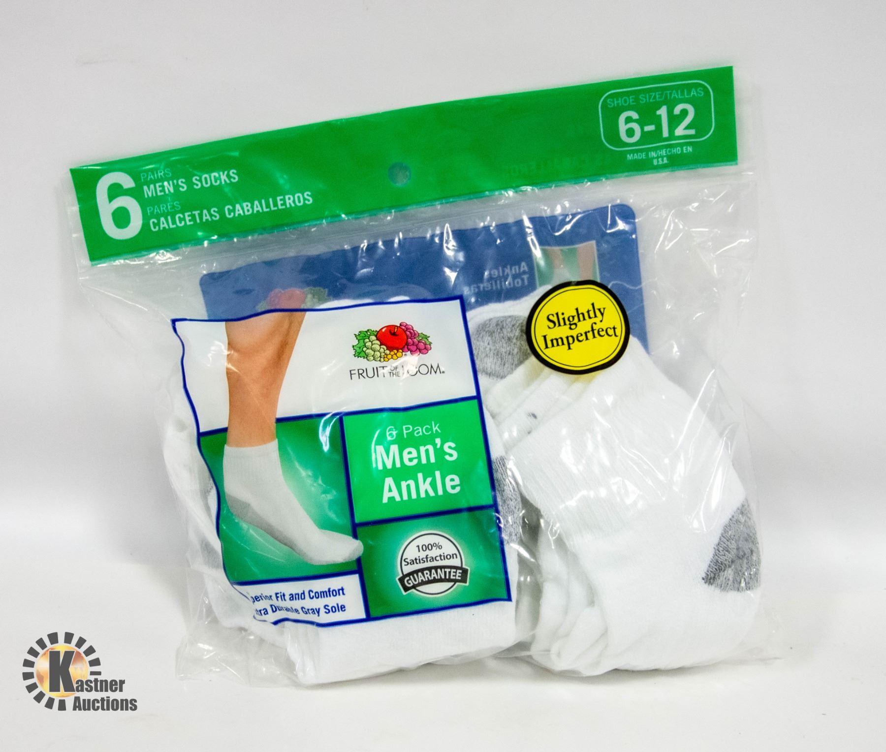 ANKLE SOCKS WHITE 6-12 SIZE 6-PACK FRUIT OF THE