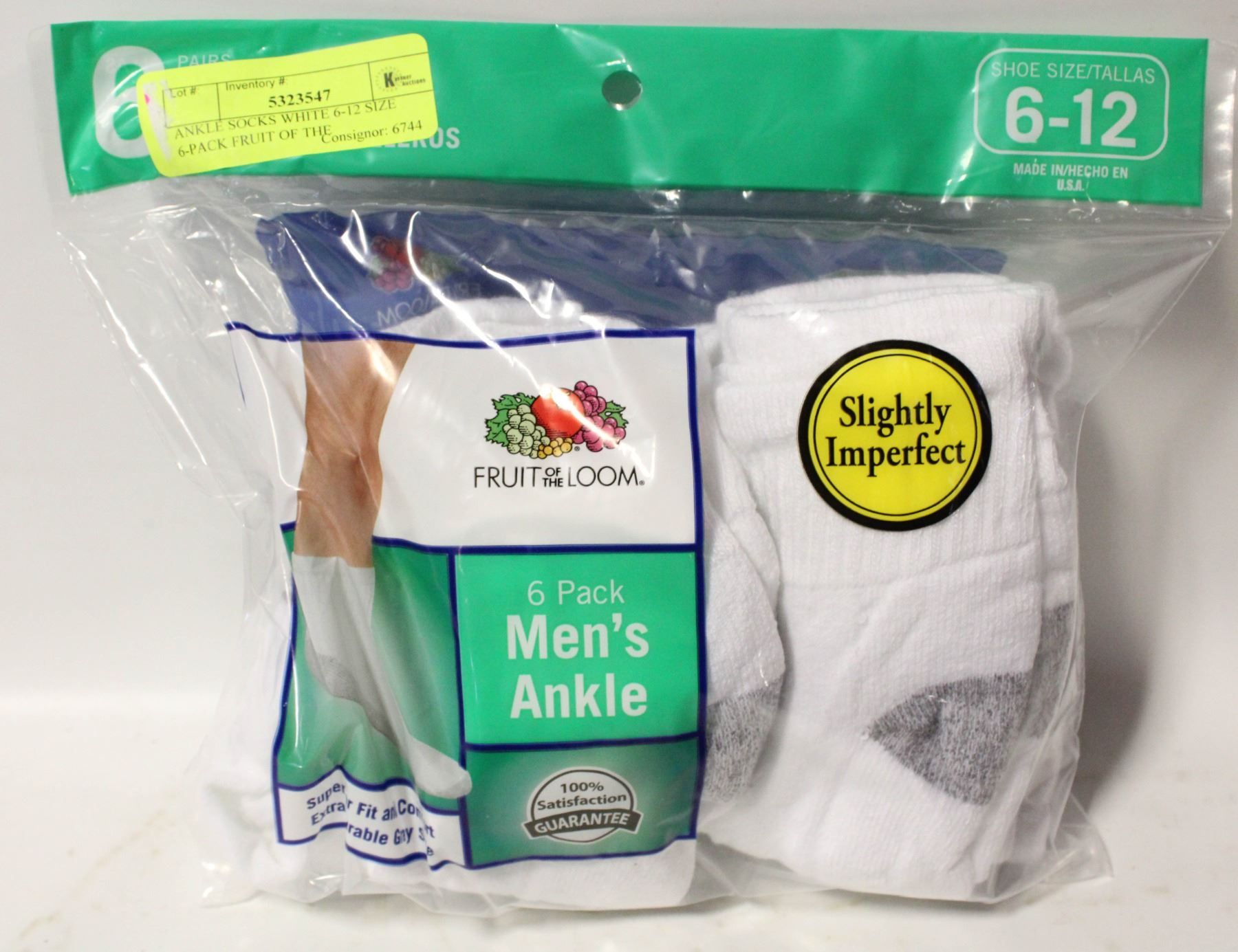 ANKLE SOCKS WHITE 6-12 SIZE 6-PACK FRUIT OF THE
