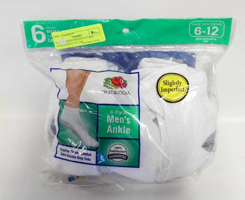 ANKLE SOCKS WHITE 6-12 SIZE 6-PACK FRUIT OF THE