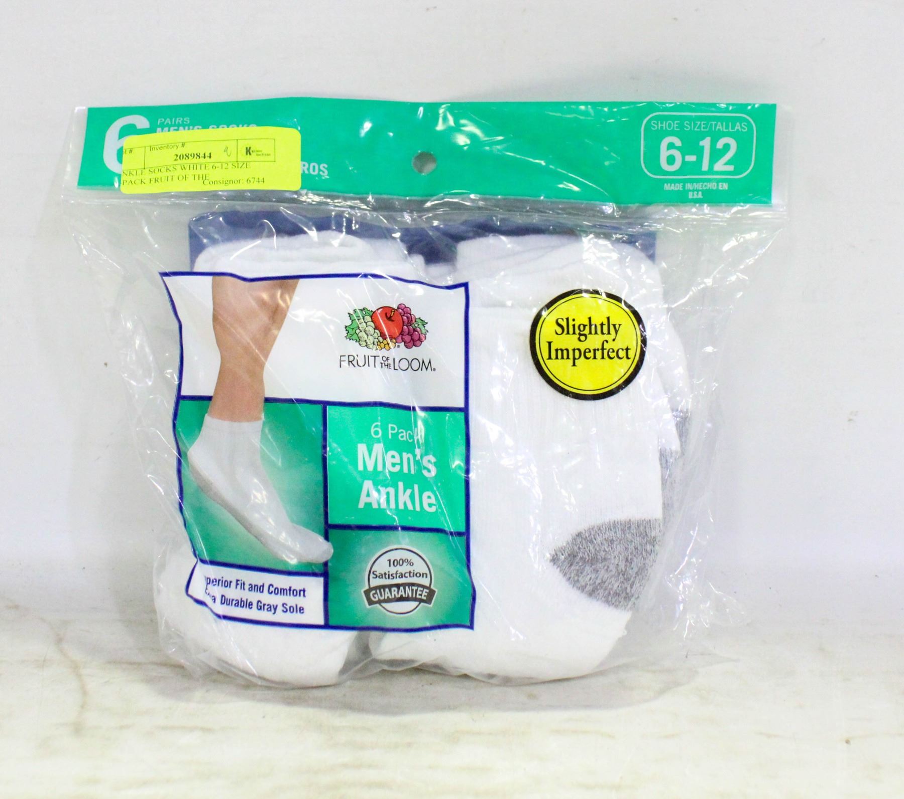 ANKLE SOCKS WHITE 6-12 SIZE 6-PACK FRUIT OF THE