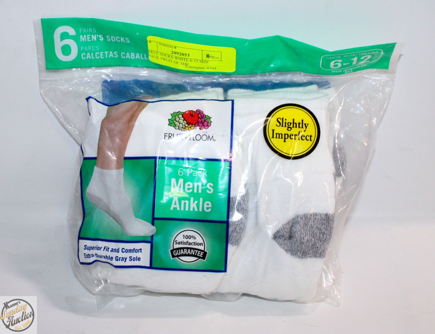 ANKLE SOCKS WHITE 6-12 SIZE 6-PACK FRUIT OF THE