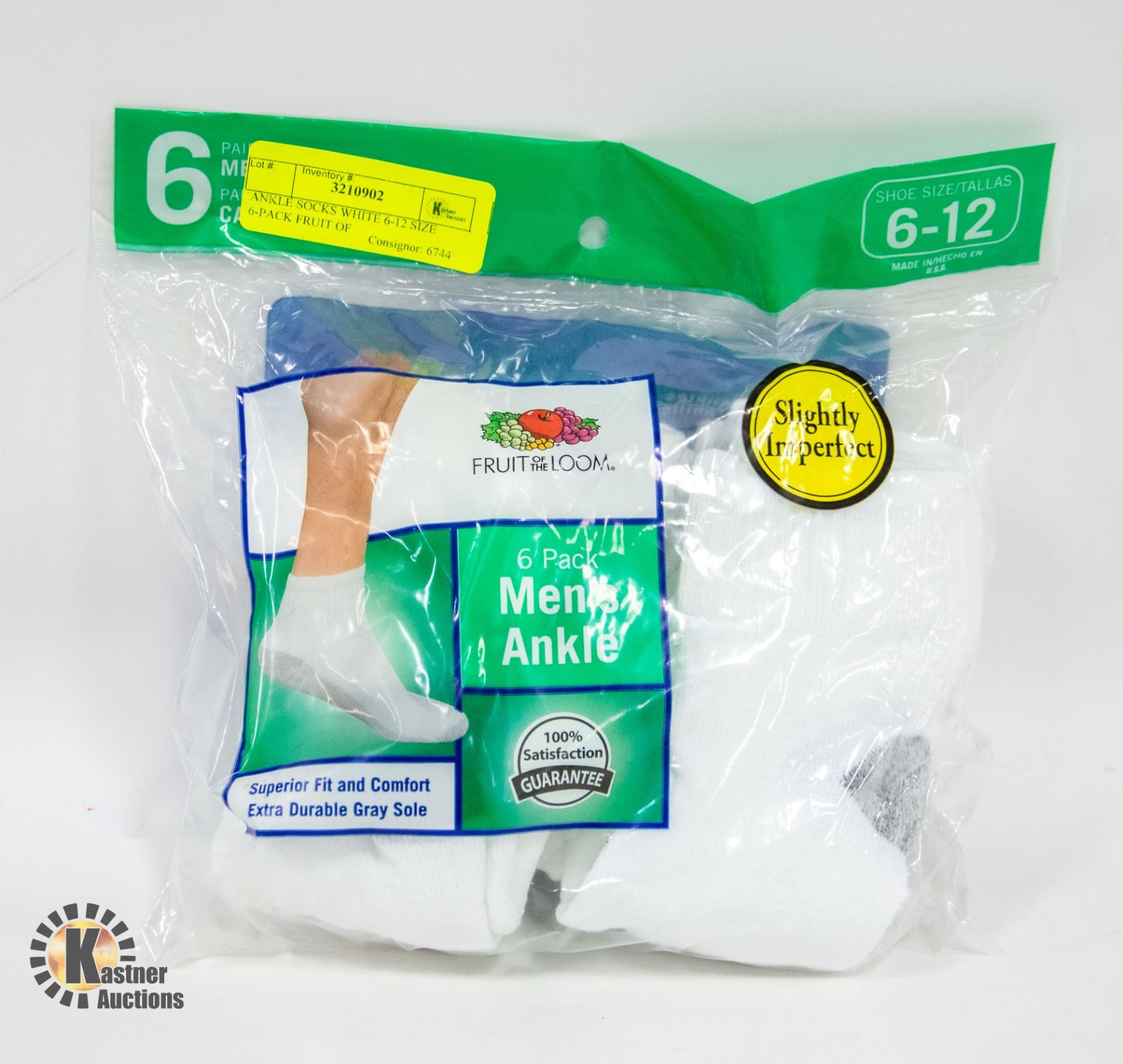 ANKLE SOCKS WHITE 6-12 SIZE 6-PACK FRUIT OF