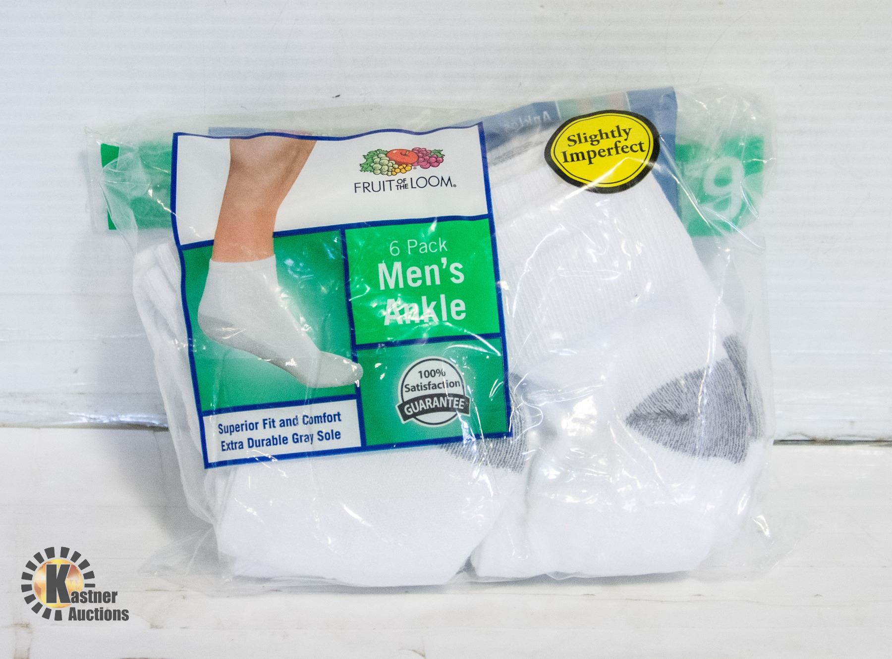 ANKLE SOCKS WHITE 6-12 SIZE 6-PACK FRUIT OF