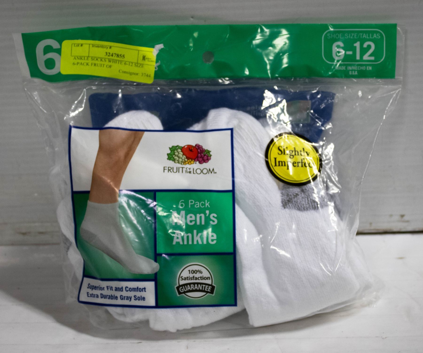 ANKLE SOCKS WHITE 6-12 SIZE 6-PACK FRUIT OF