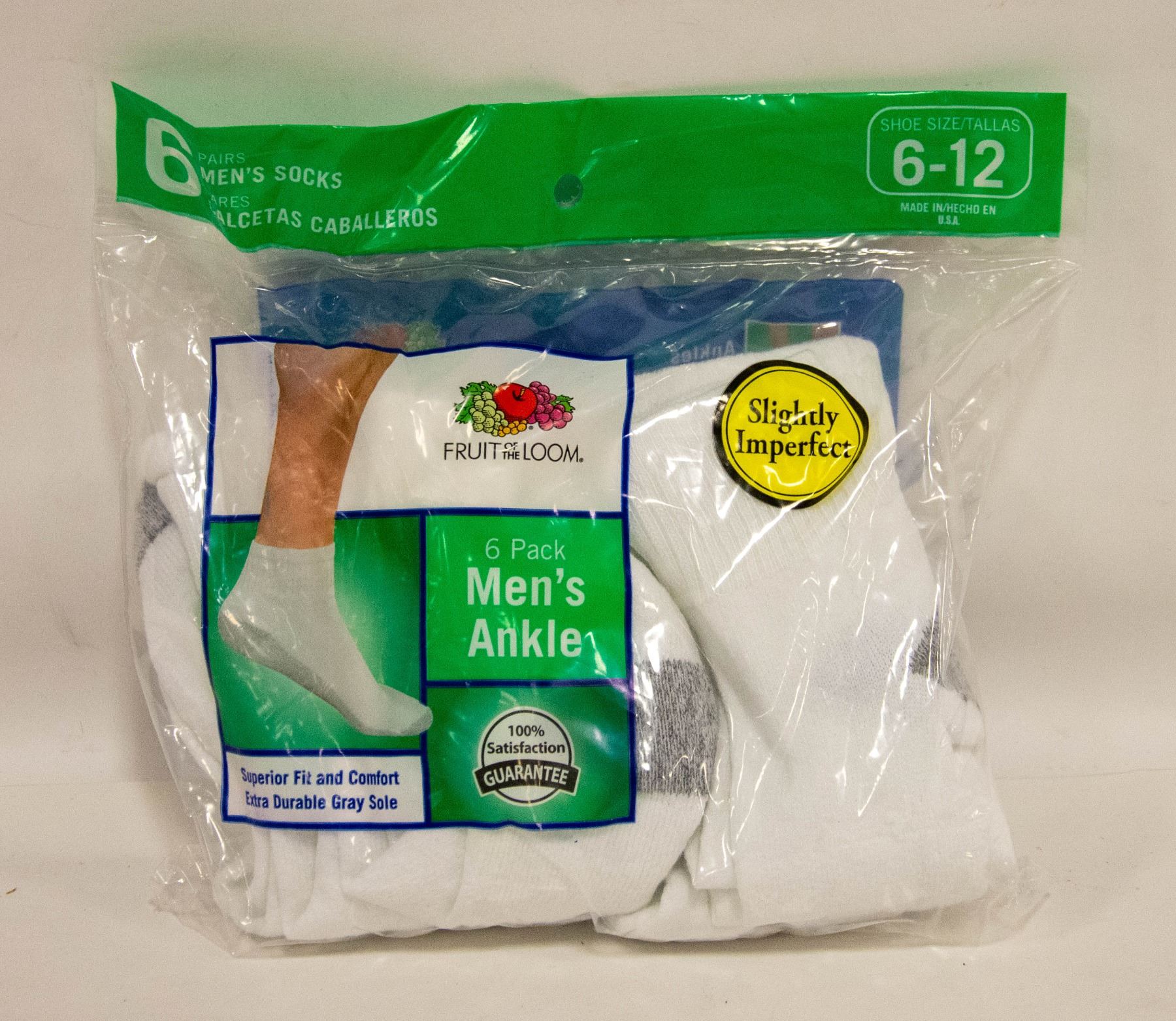 ANKLE SOCKS WHITE 6-12 SIZE 6-PACK FRUIT OF