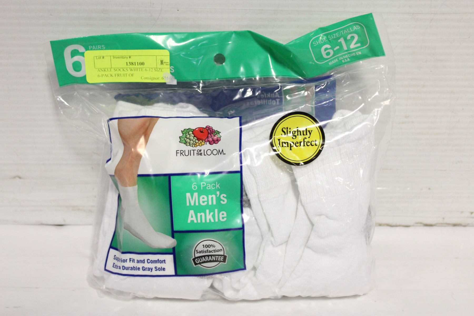 ANKLE SOCKS WHITE 6-12 SIZE 6-PACK FRUIT OF