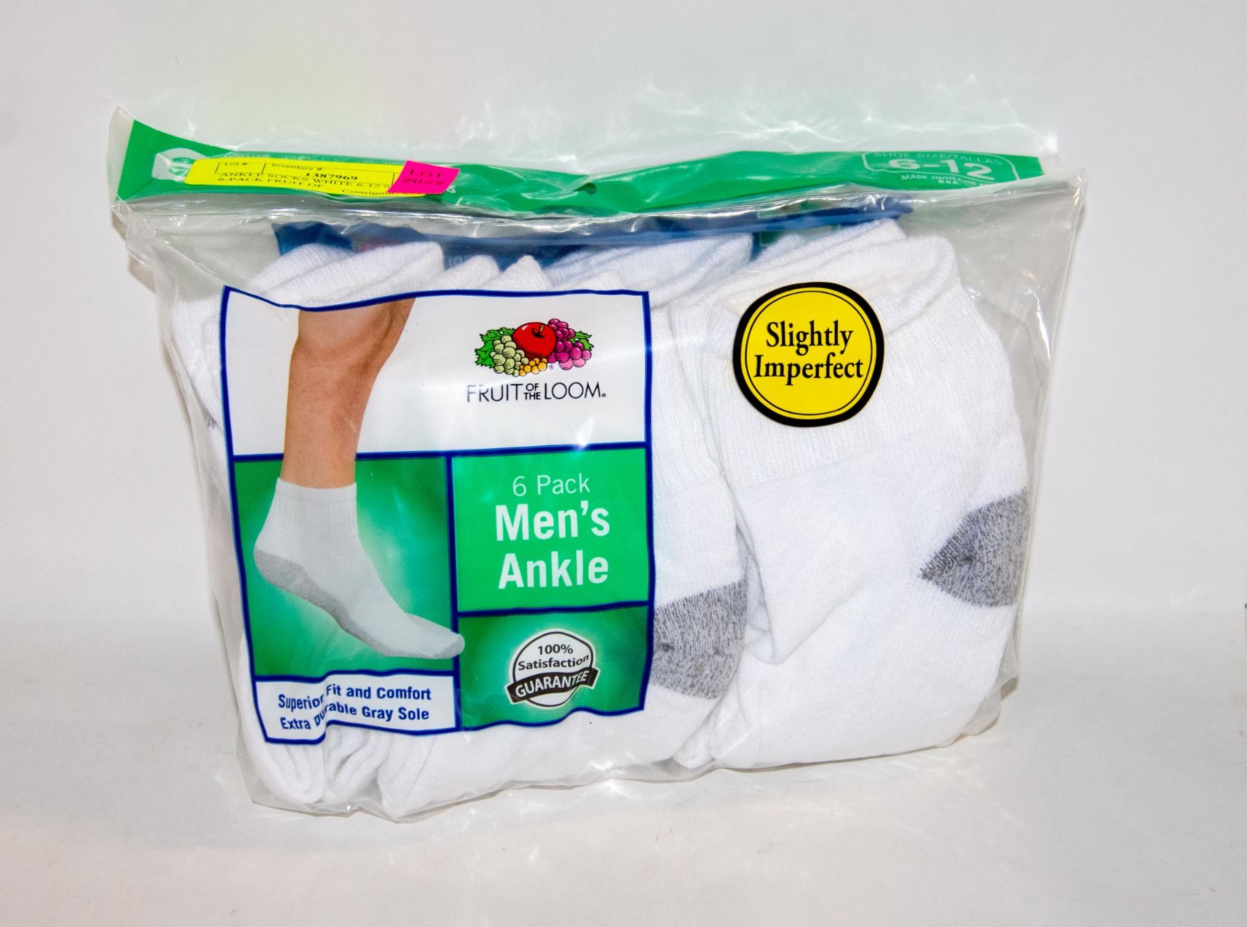 ANKLE SOCKS WHITE 6-12 SIZE 6-PACK FRUIT OF