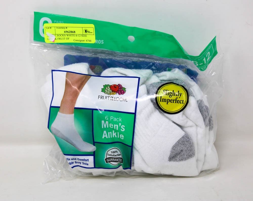 ANKLE SOCKS WHITE 6-12 SIZE 6-PACK FRUIT OF