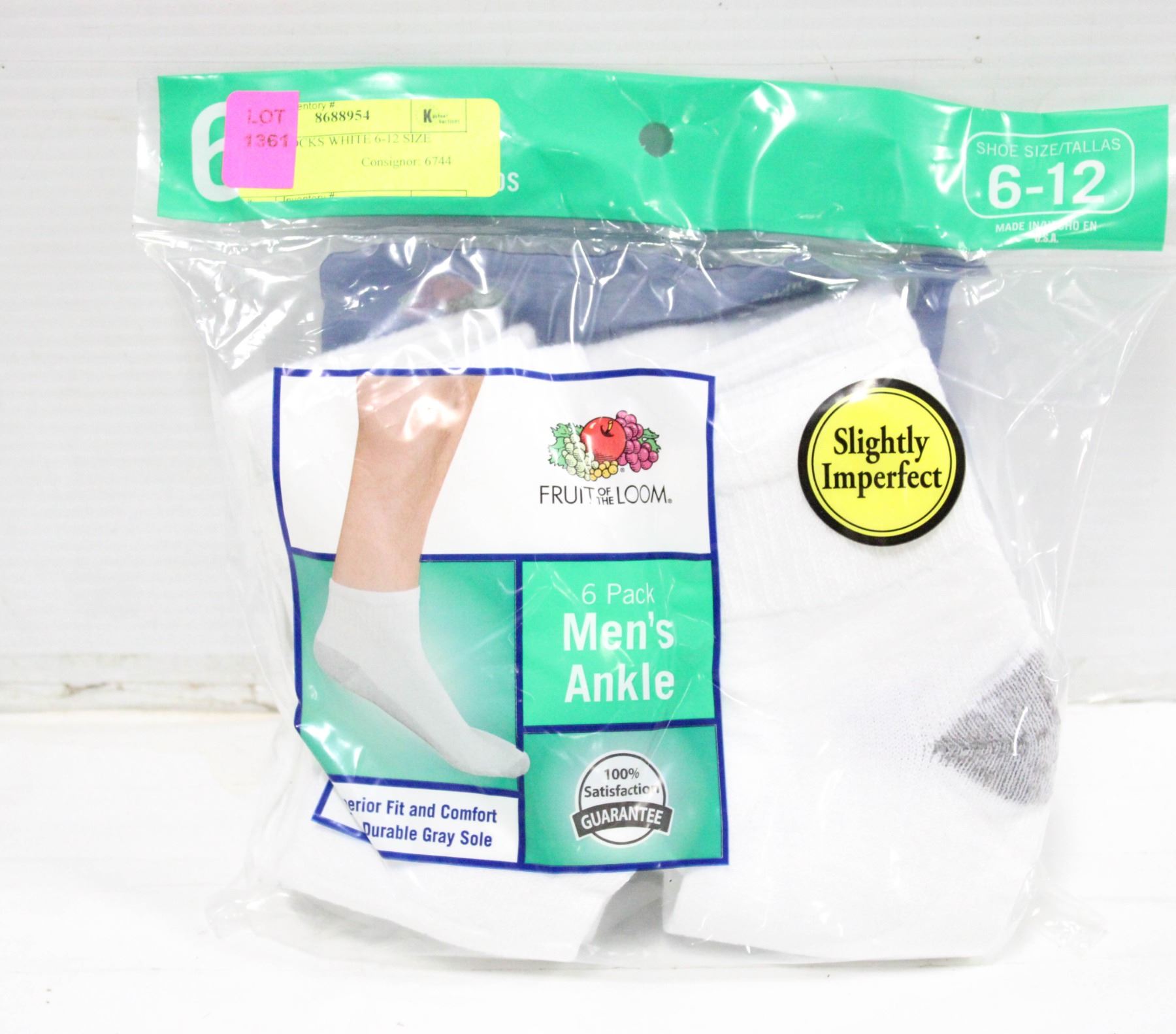 ANKLE SOCKS WHITE 6-12 SIZE 6-PACK