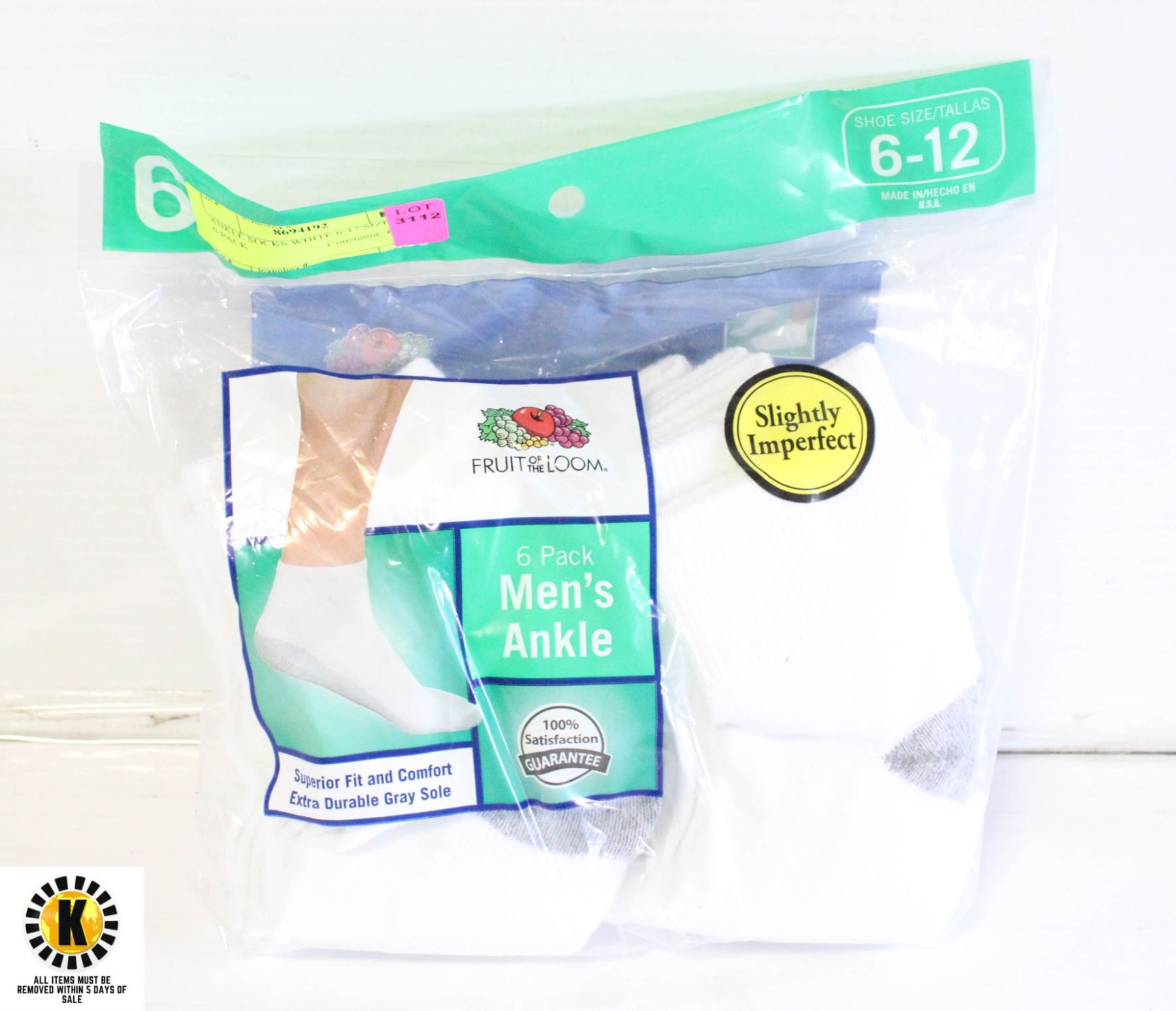 ANKLE SOCKS WHITE 6-12 SIZE 6-PACK