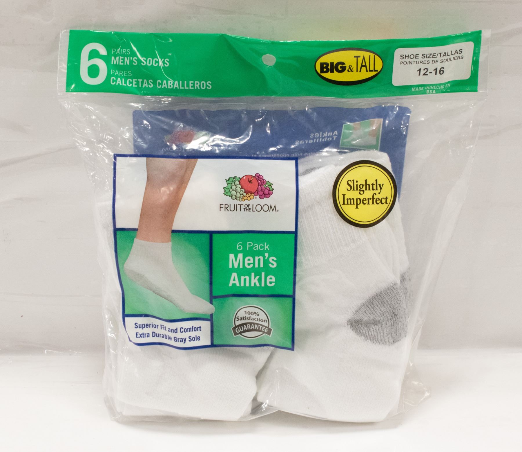 ANKLE SOCKS WHITE,SIZE 12-16,6-PACK,FRUIT OF THE