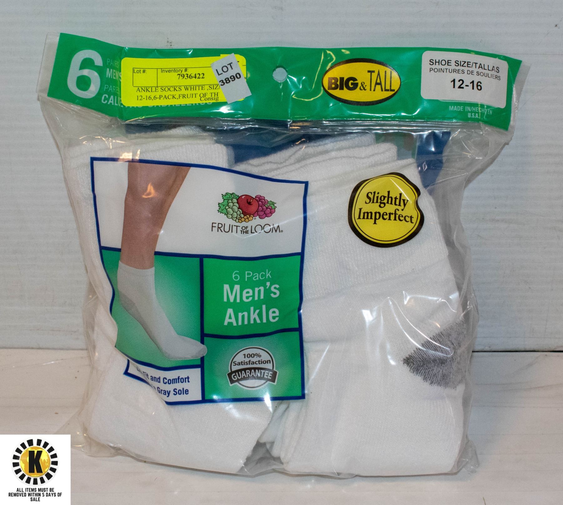 ANKLE SOCKS WHITE ,SIZE 12-16,6-PACK,FRUIT OF THE