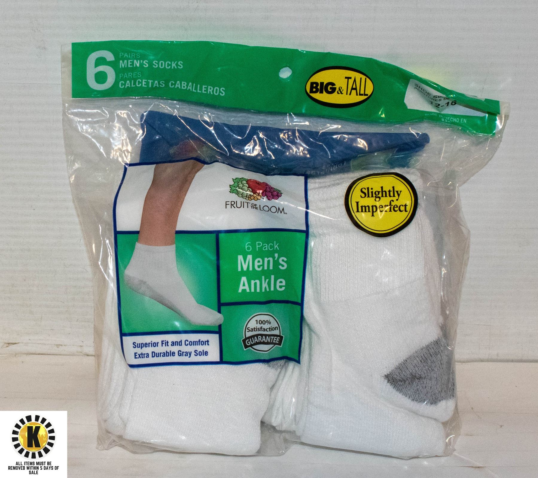 ANKLE SOCKS WHITE,SIZE 12-16,6-PACK,FRUIT OF THE