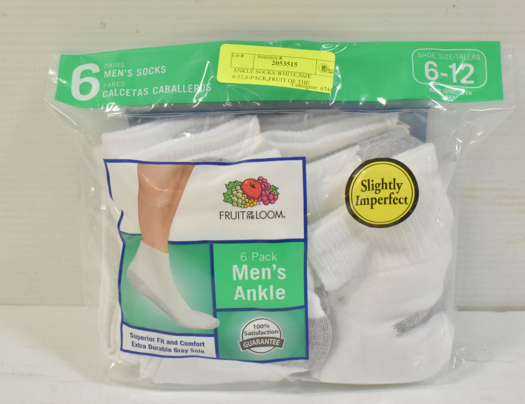 ANKLE SOCKS WHITE,SIZE 6-12,6-PACK,FRUIT OF THE