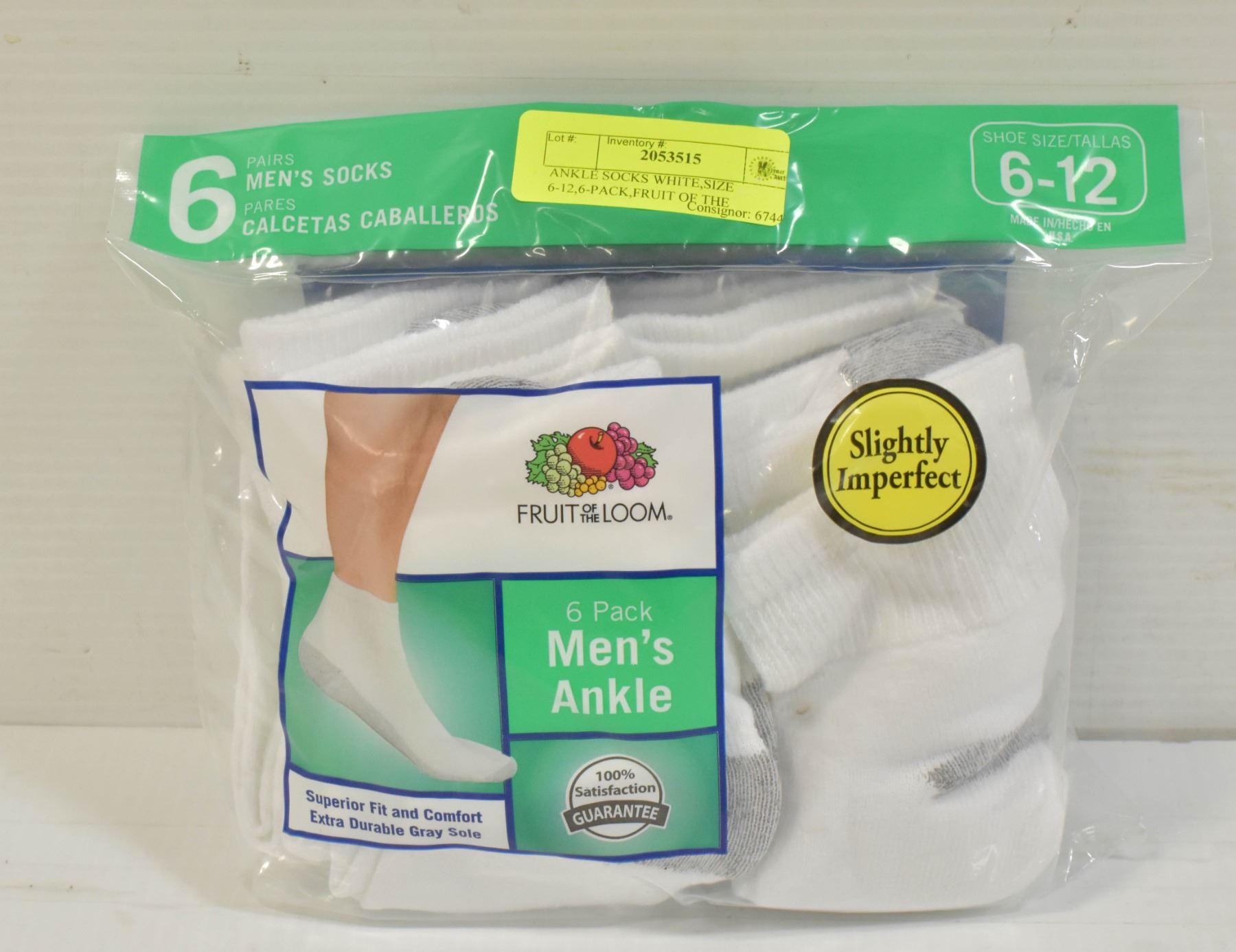 ANKLE SOCKS WHITE,SIZE 6-12,6-PACK,FRUIT OF THE
