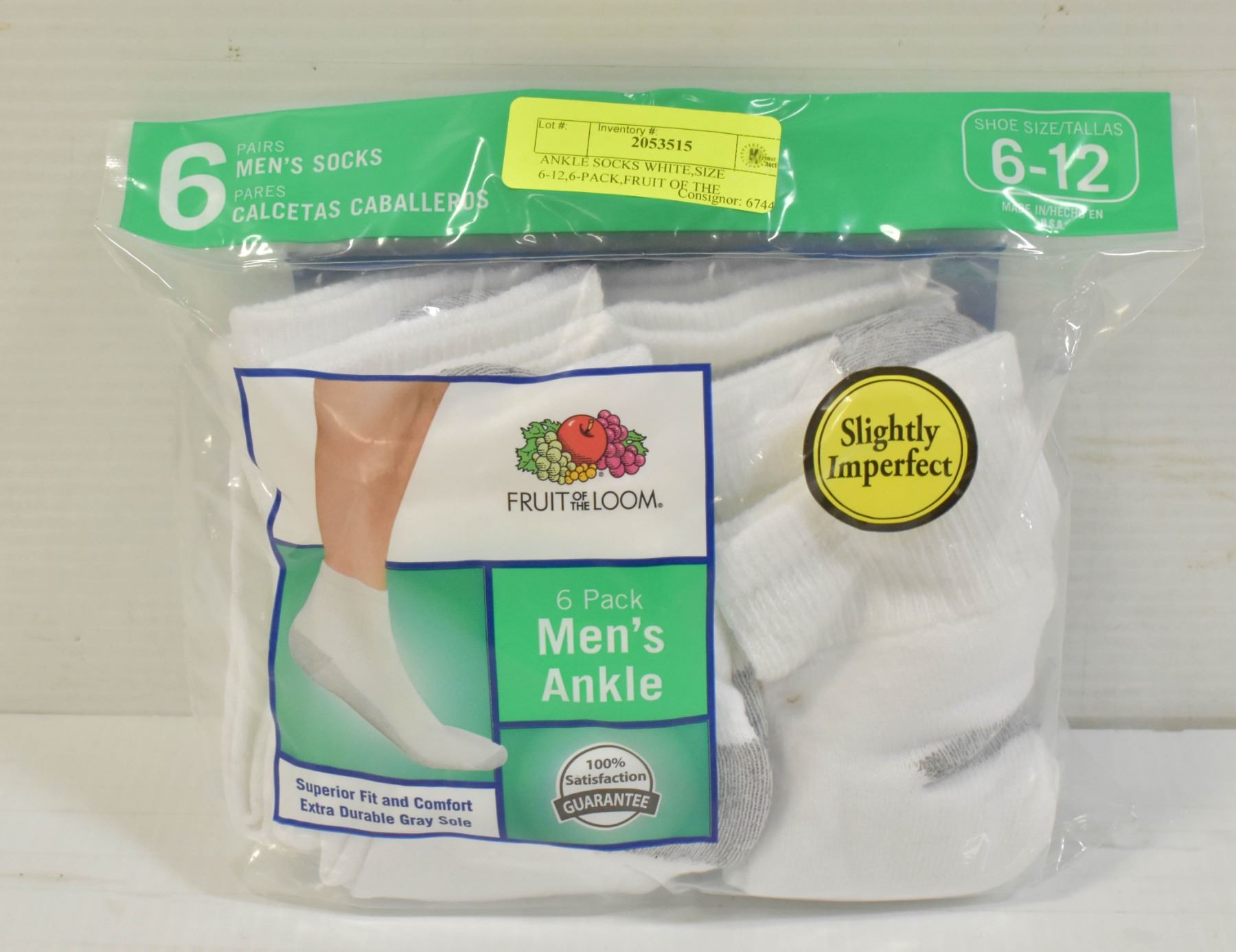 ANKLE SOCKS WHITE,SIZE 6-12,6-PACK,FRUIT OF THE