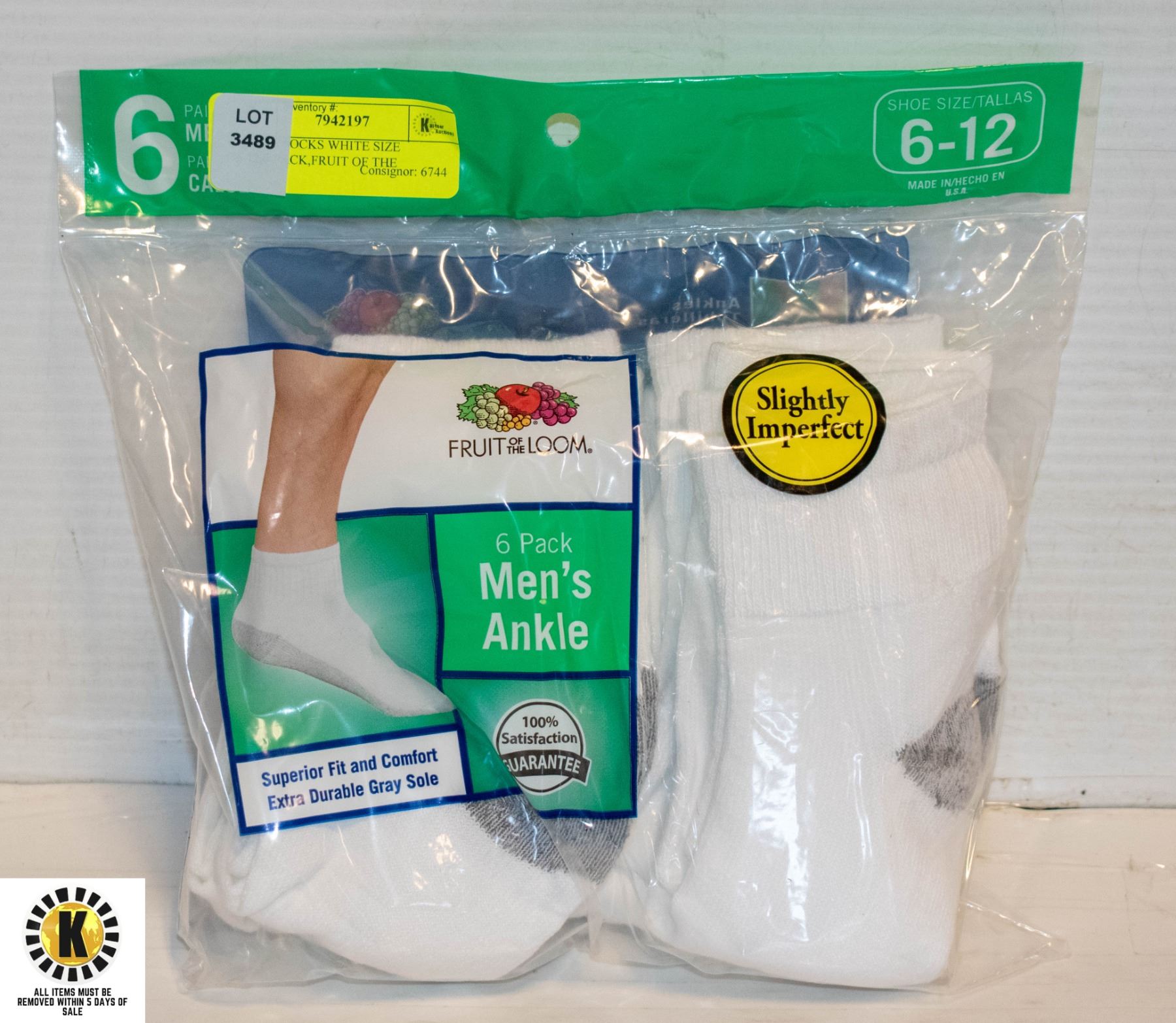 ANKLE SOCKS WHITE SIZE 6-12,6-PACK,FRUIT OF THE