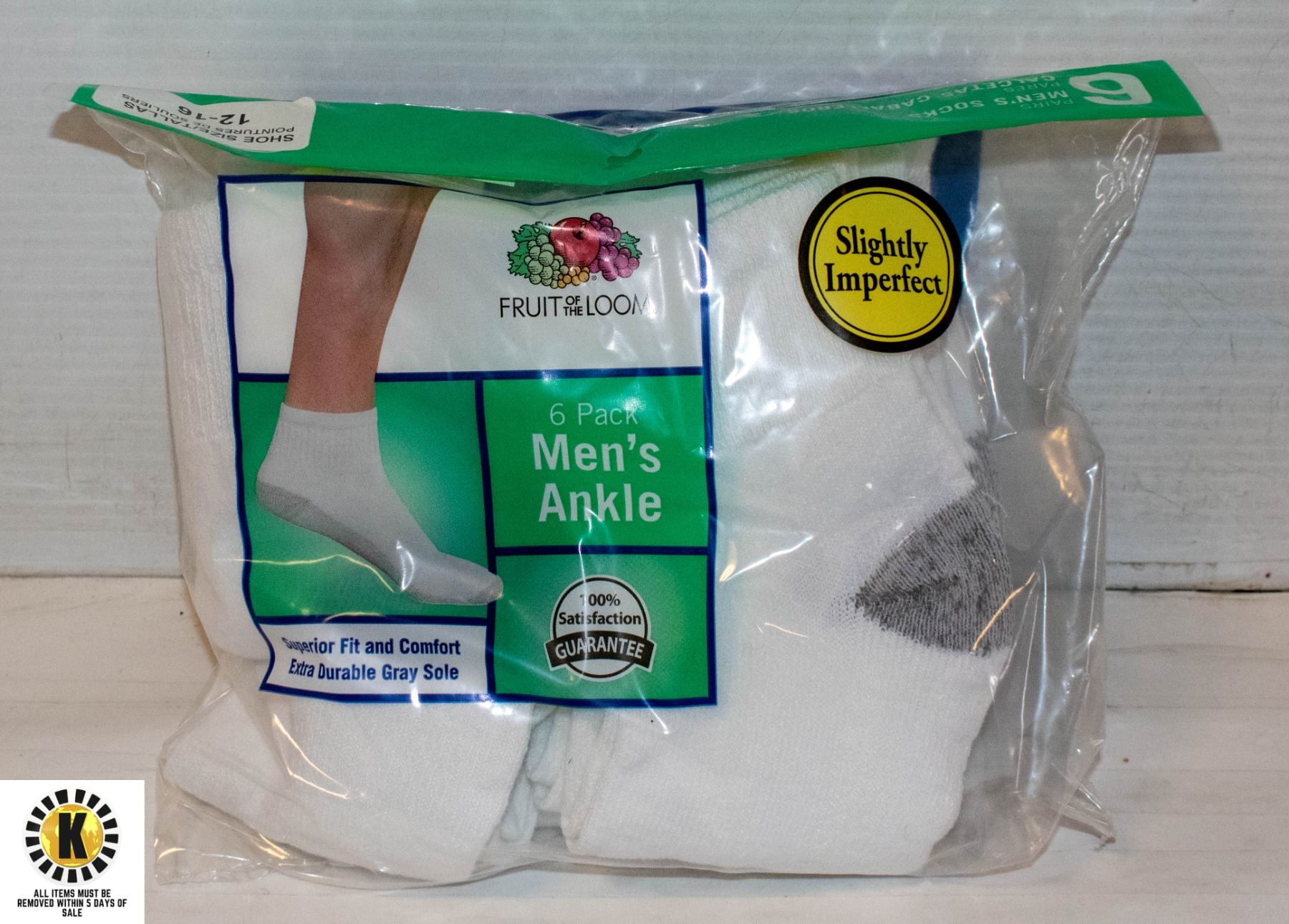 ANKLE SOCKS WHITE,SIZE 6-12,6-PACK,FRUIT OF THE