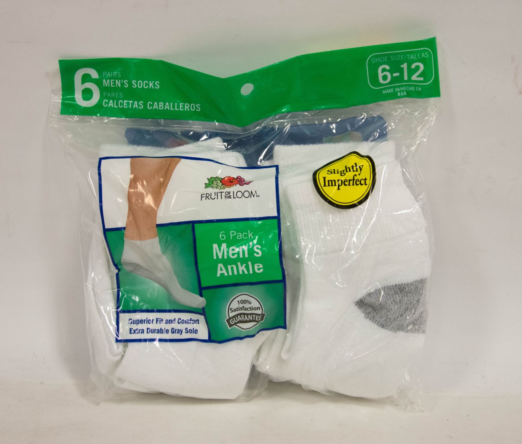 ANKLE SOCKS WHITE SIZE 6-12,6-PACK,FRUIT OF THE