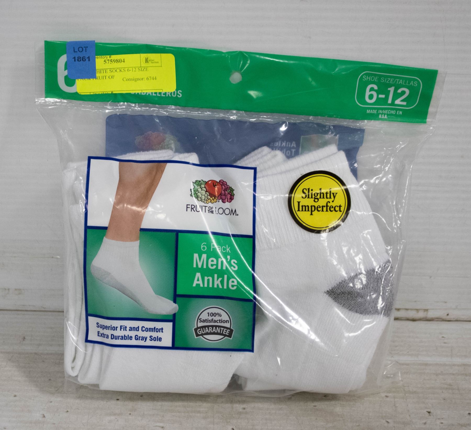 ANKLE WHITE SOCKS 6-12 SIZE 6-PACK FRUIT OF