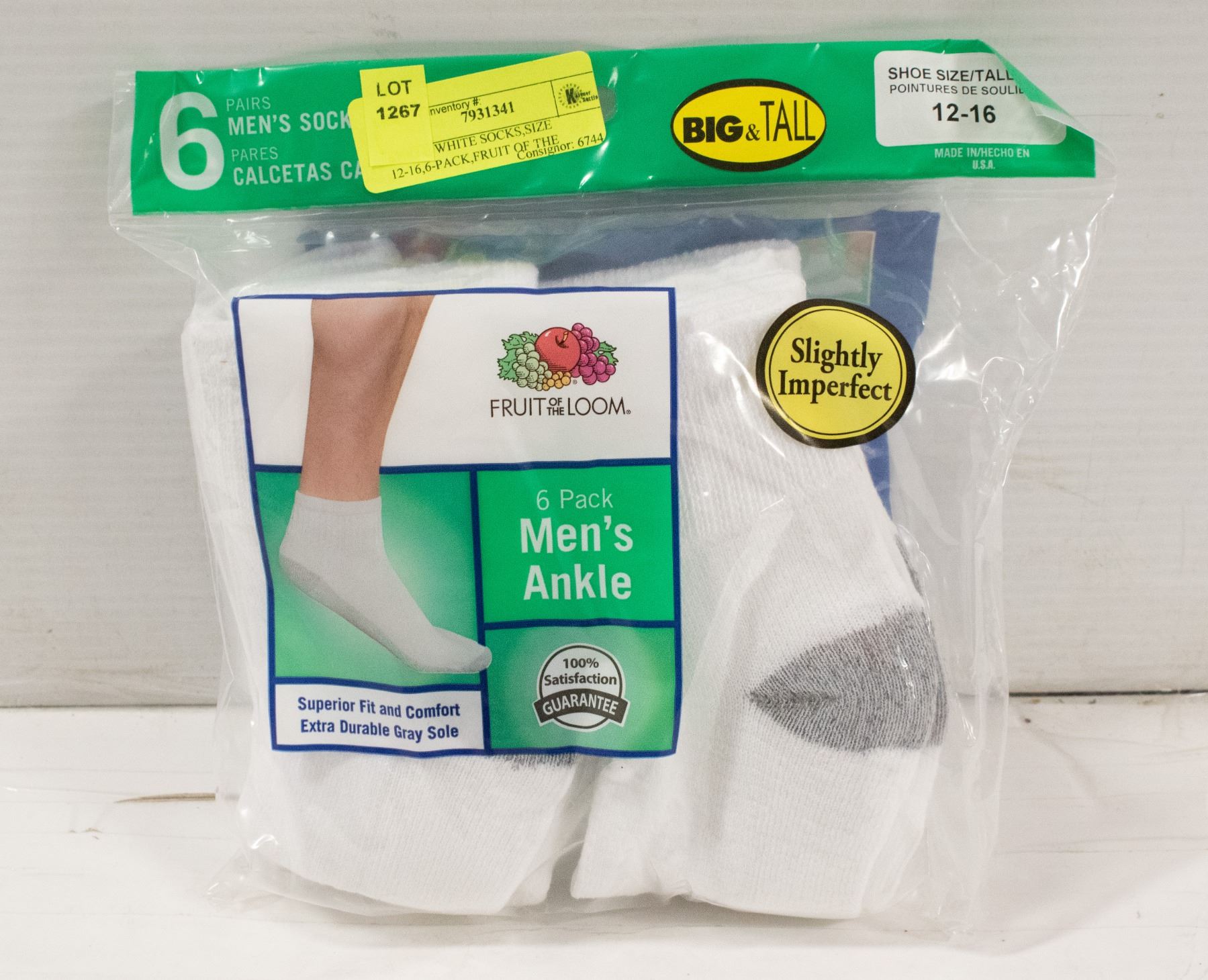 ANKLE WHITE SOCKS,SIZE 12-16,6-PACK,FRUIT OF THE