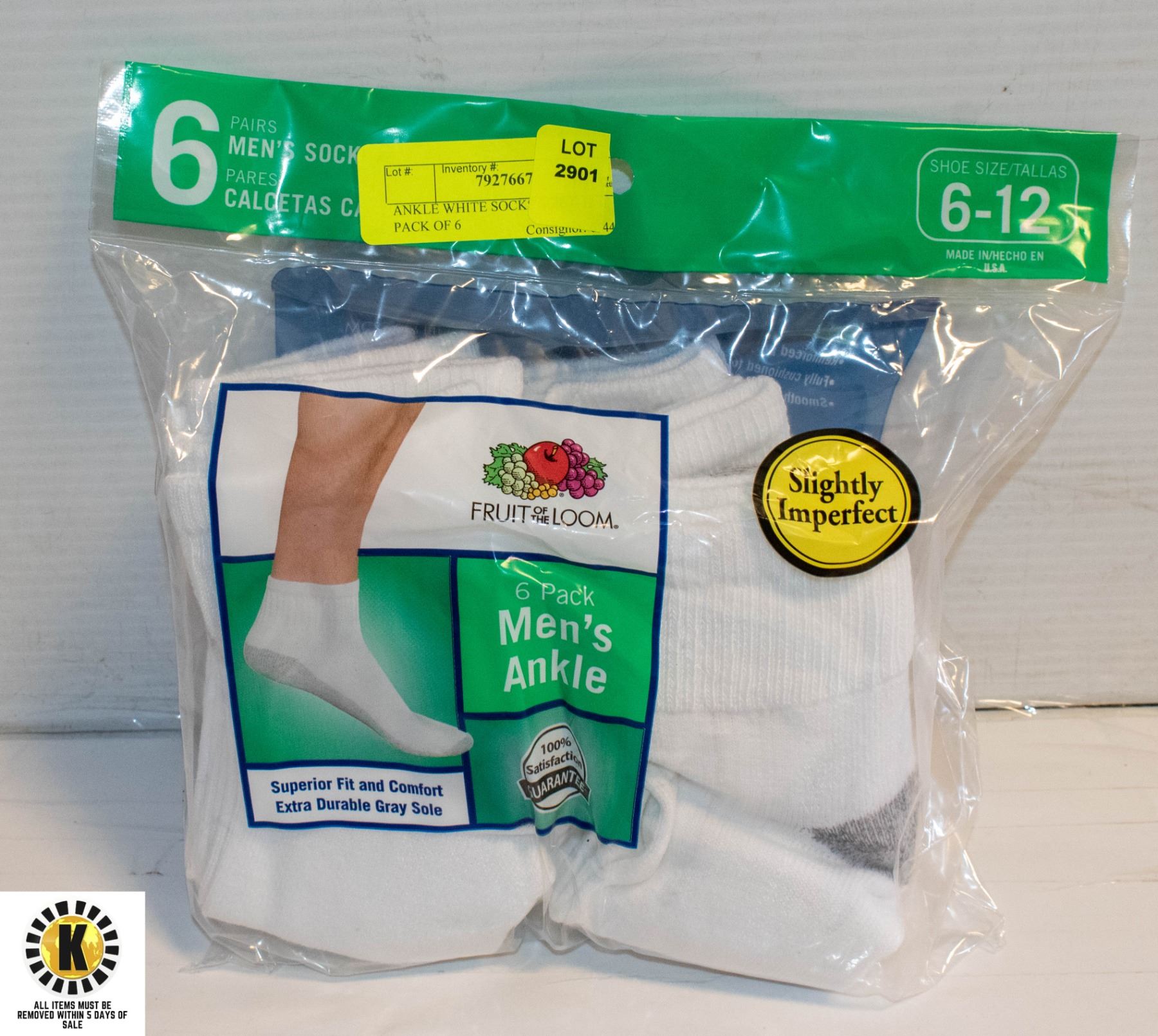 ANKLE WHITE SOCKS SIZE 6-12 PACK OF 6