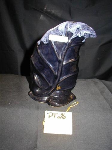 ANNA VAN BRIGGLE LEAF SHAPED VASE, EXCELLENT