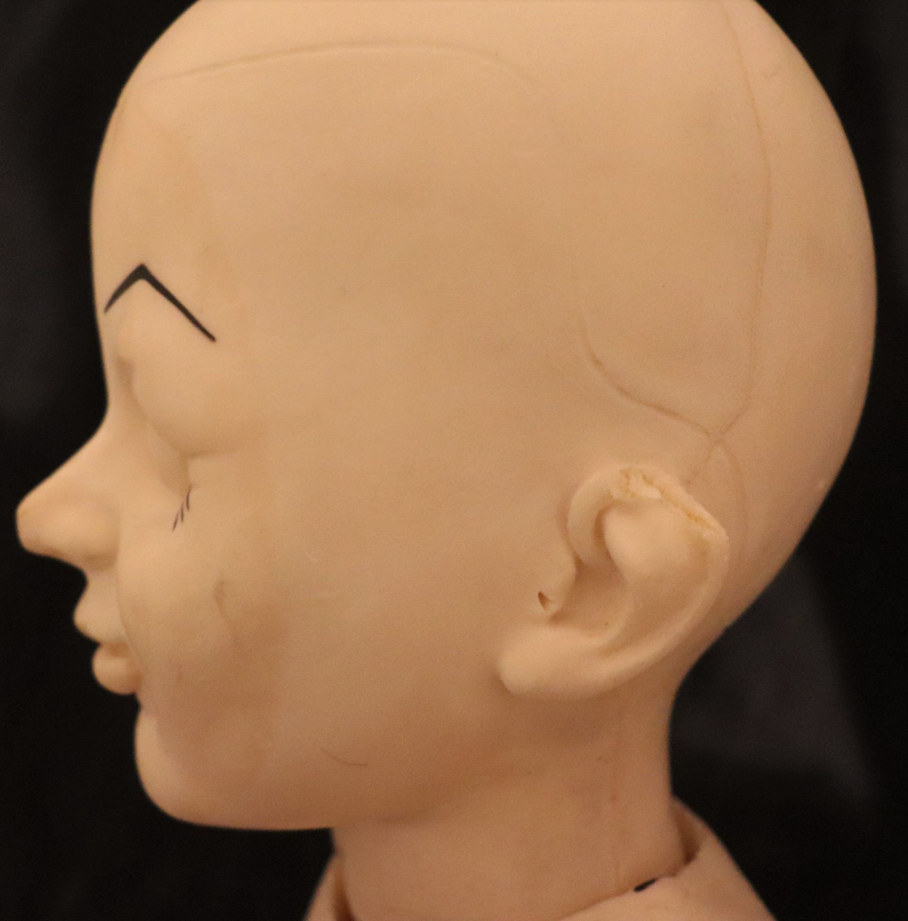 This was made as a Hero puppet that the head turns. I assume it was scrapped because of the chipped left ear.