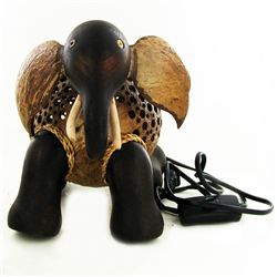 Coconut Shell Teak Elephant Lamp (DEC-000685)