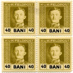 1918 Romania 40b Austria Occupation Carl 4 Block Error (STM-000469)