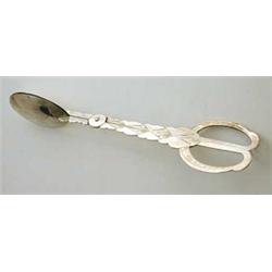 Silber. Stilisiertes graviertes Dekor. Flache Griffe mit ovalen Laffen, eine Laffe mit Monogramm MMC. Gebrauchsspuren. L.: 23,5 cm. Bez.: Feingehaltsmarke800, ungedeutete Firmenmarke. Um 1910