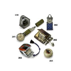 ANONYMOUS MANUFACTURED CIRCA 1930 AN ART-DECO 8-DAYS CHROME AND ENAMEL PURSE WATCH NICKEL LEVER M...