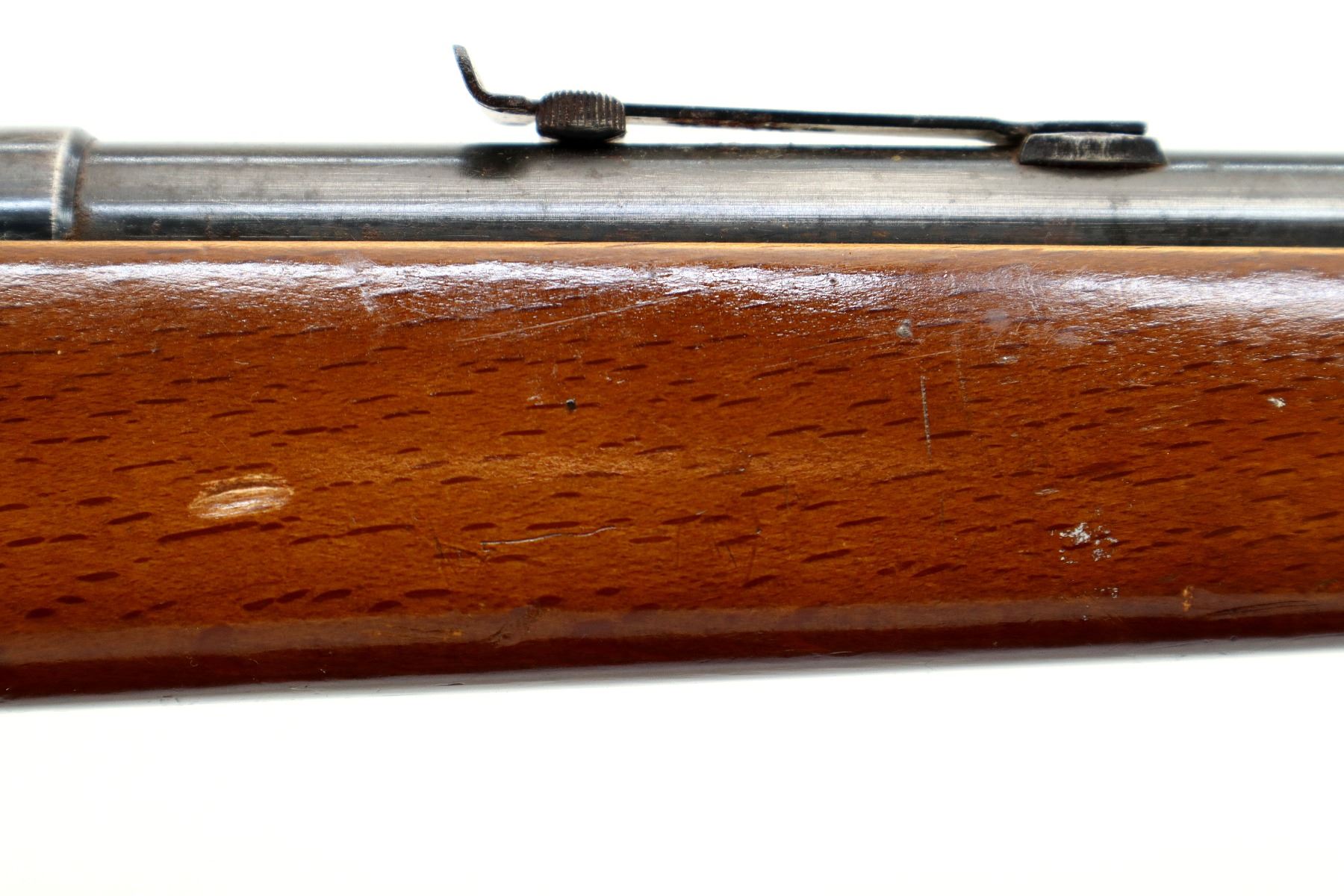 Wear: Metal finish turning brown with light pitting, rust speckles, scratches, handling marks and wear. Stock shows marks, scratches and wear.