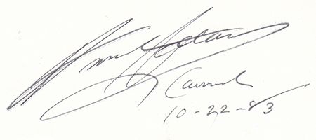 (1902-1984) American photographer whose sharply focused black and white landscapes gained photography recognition as fine art. White card, 3" x 4 1/2", signed "Ansel Adams Carmel, 11-22-83". Fine.