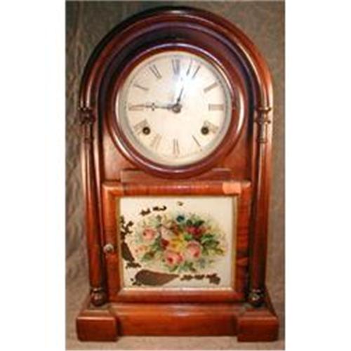 <tr><td>Title:ANSONIA Mantle CLOCK Round TOP Reverse PAINTED </td></tr>